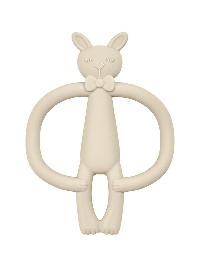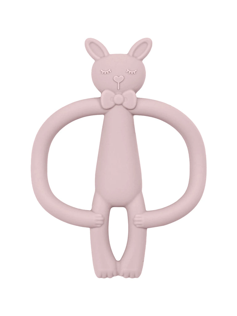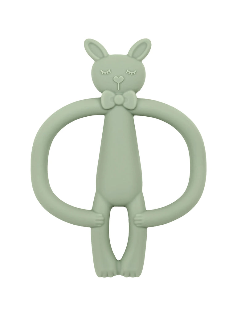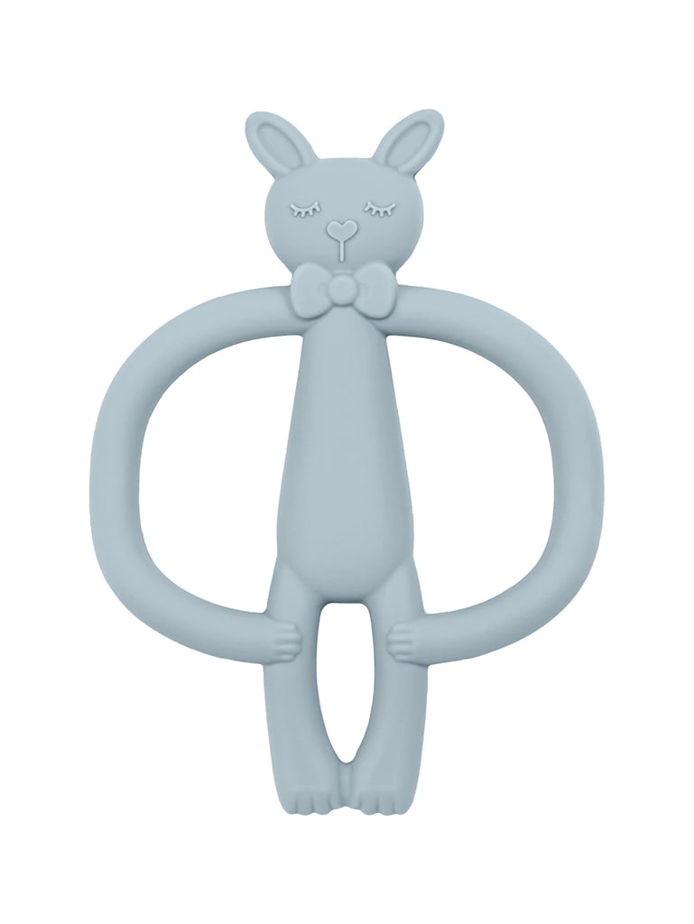 Designed for teething infants, this silicone teether features a playful cartoon rabbit shape that captures babies' attention while soothing tender gums. Made from food-grade silicone, it's soft, flexible, and safe for little ones to chew and explore. The vibrant colors stimulate visual development, while the textured surface provides varied sensations during the teething phase. Easy to clean and lightweight, it's an ideal gift for newborns and young infants seeking comfort and relief during this developmental milestone.